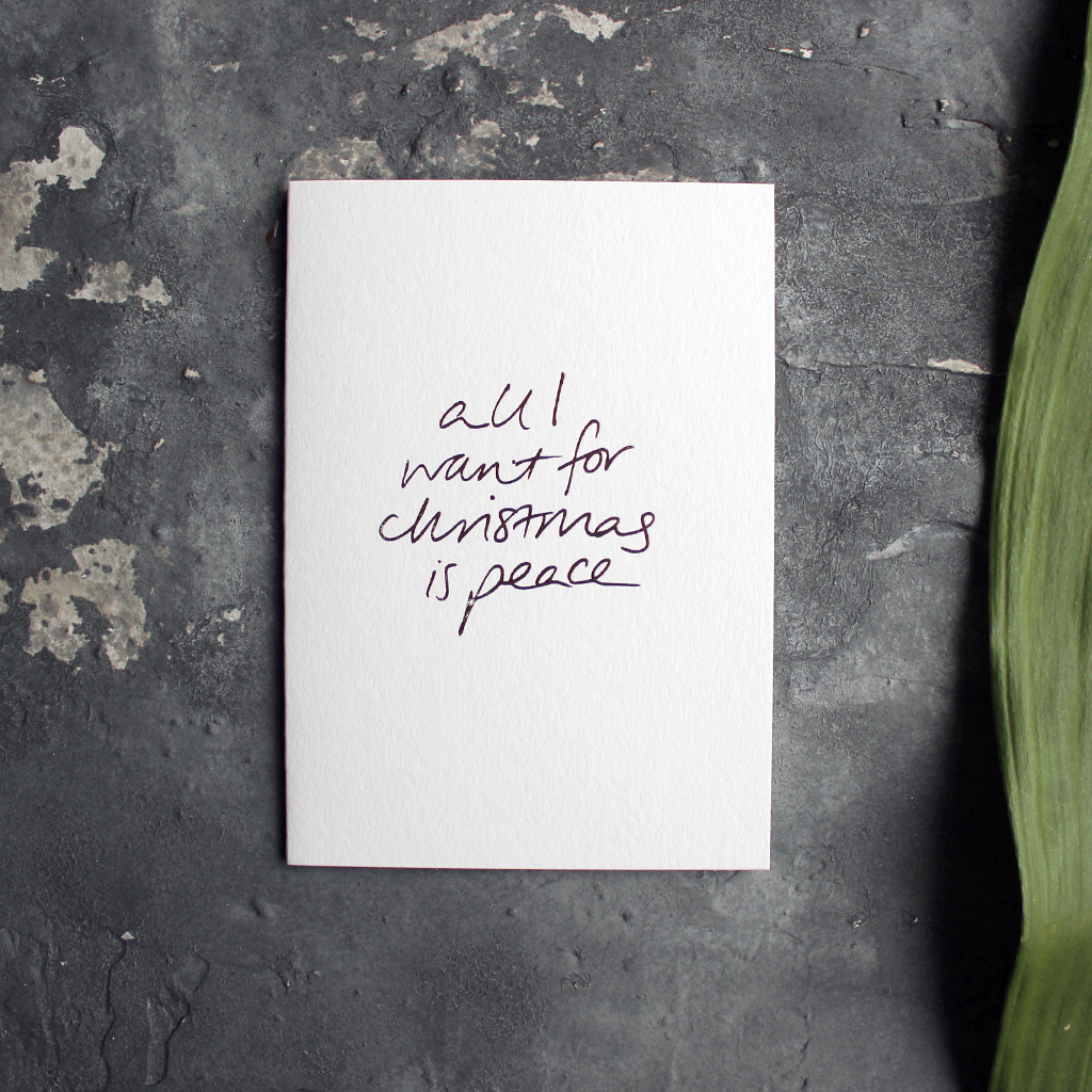 All I Want For Christmas Is Peace Card Hand foiled rose gold